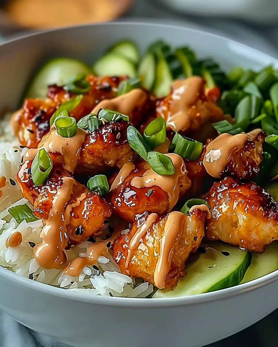 PrintBang Bang Chicken Bowl: Easy Recipe with Turkey Bacon Twist