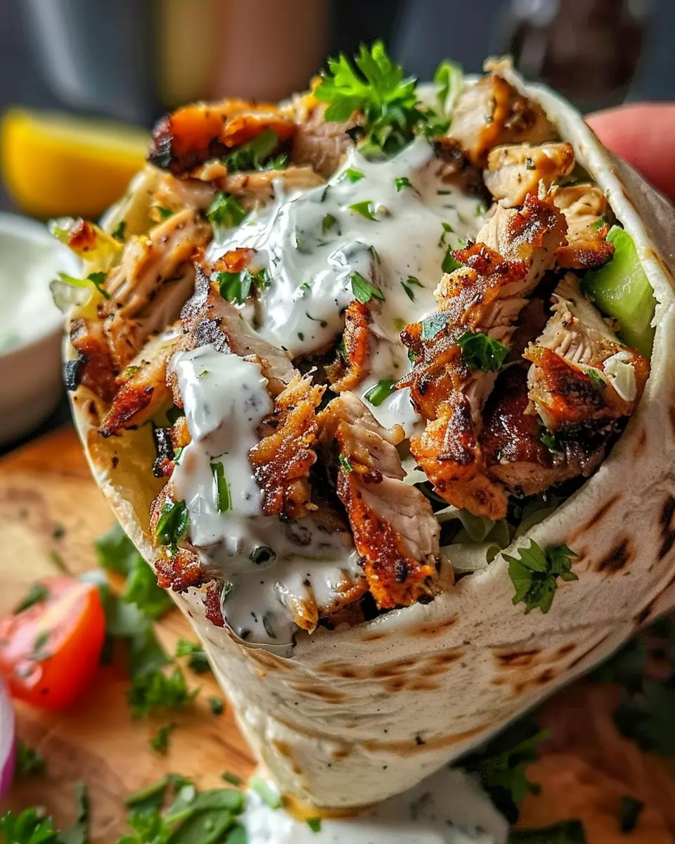 Now it’s time to bring everything together! Here’s how to assemble your delicious chicken shawarma: