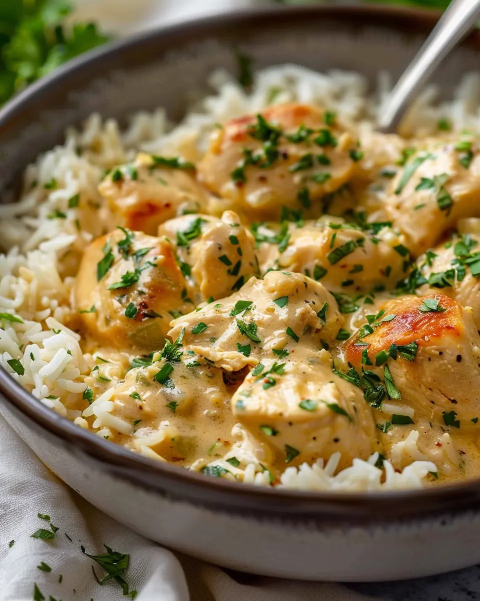 Keywords: Creamy Herb Chicken, Basmati Rice, cozy comfort dish