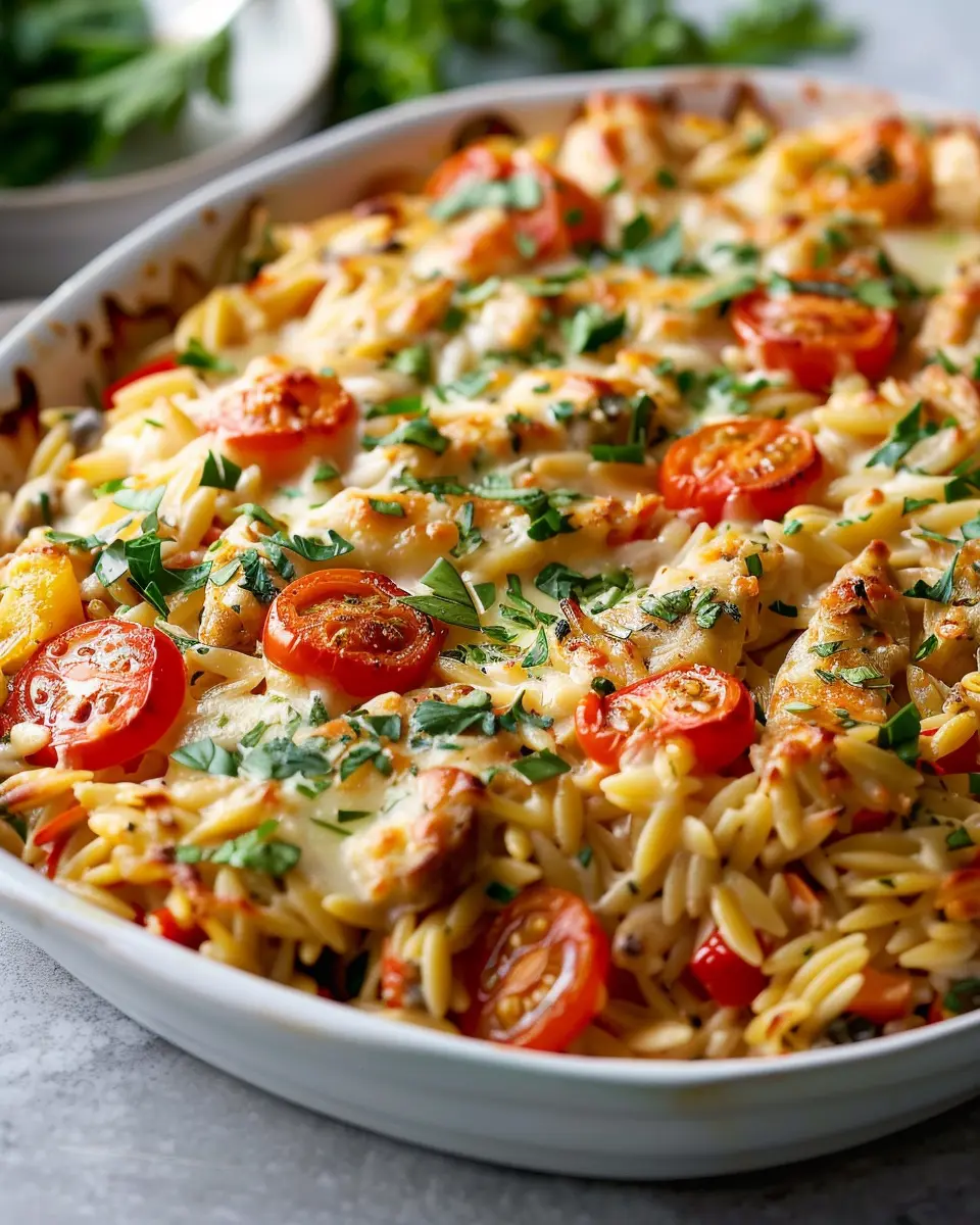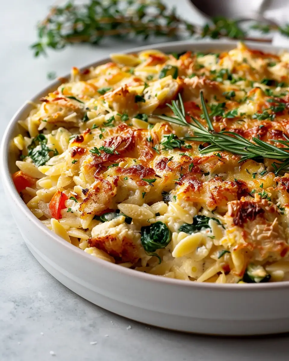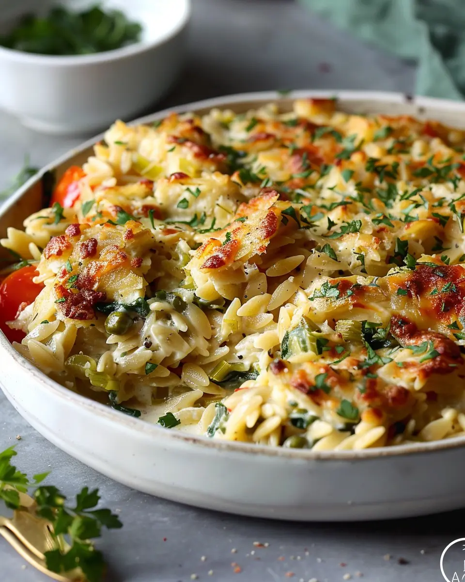 A creamy and delicious orzo bake that’s packed with flavor and perfect for a quick weeknight dinner.