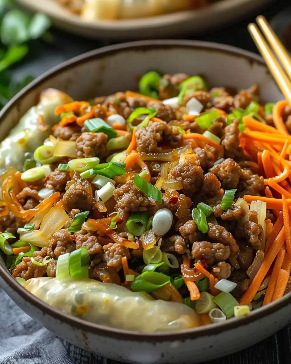 Egg Roll in a Bowl has swiftly become a favorite for anyone looking for a delicious, wholesome meal that’s prepared in a snap. Imagine all the flavors you love in a traditional egg roll—savory beef, crisp veggies, and that unmistakable umami taste—served in a warm, inviting bowl. This dish transforms the classic flavors of a beloved appetizer into a full meal that skips the tedious wrapping process, making it the perfect weeknight solution.