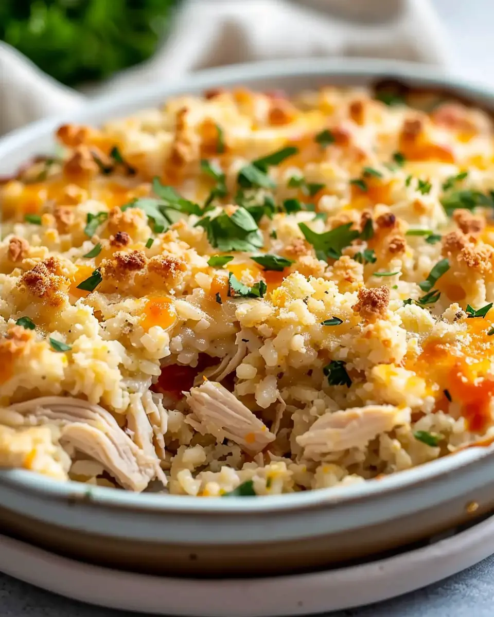 PrintHealthy Chicken Cauliflower Rice Casserole: A Comforting Twist