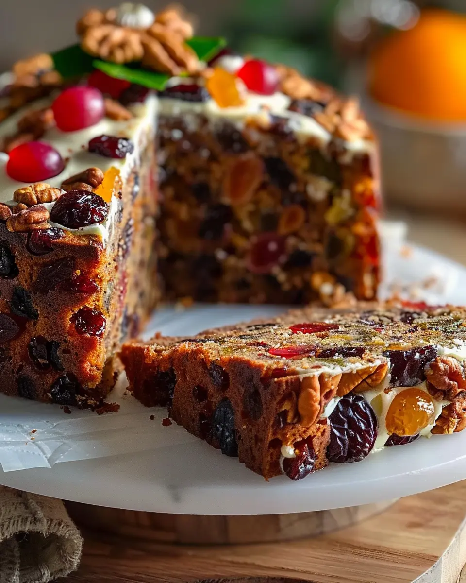 Moreover, the spices—cinnamon, nutmeg, and cloves—add warmth and depth, elevating the cake from a mere dessert to a festive centerpiece. It’s not just a cake; it’s a celebration captured in layers. According to food experts, the best fruit cakes are often better after aging a bit, allowing the flavors to meld and develop.