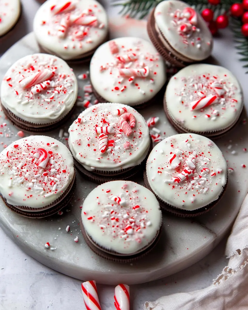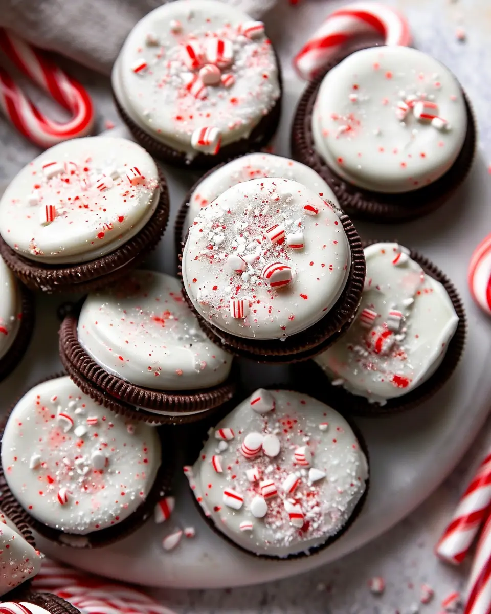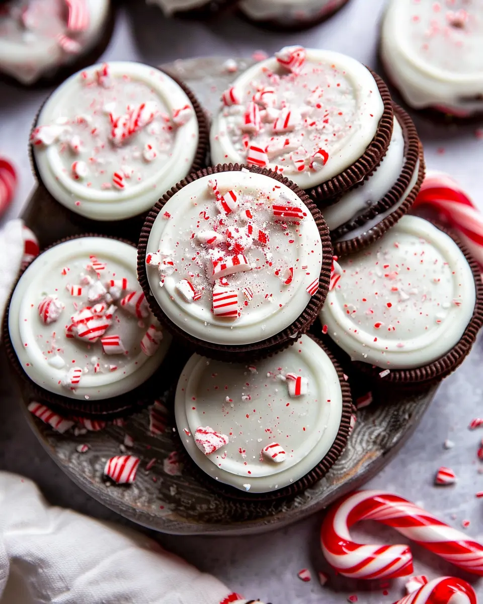 Keywords: Peppermint Bark Oreos, holiday treats, festive cookies, peppermint dessert