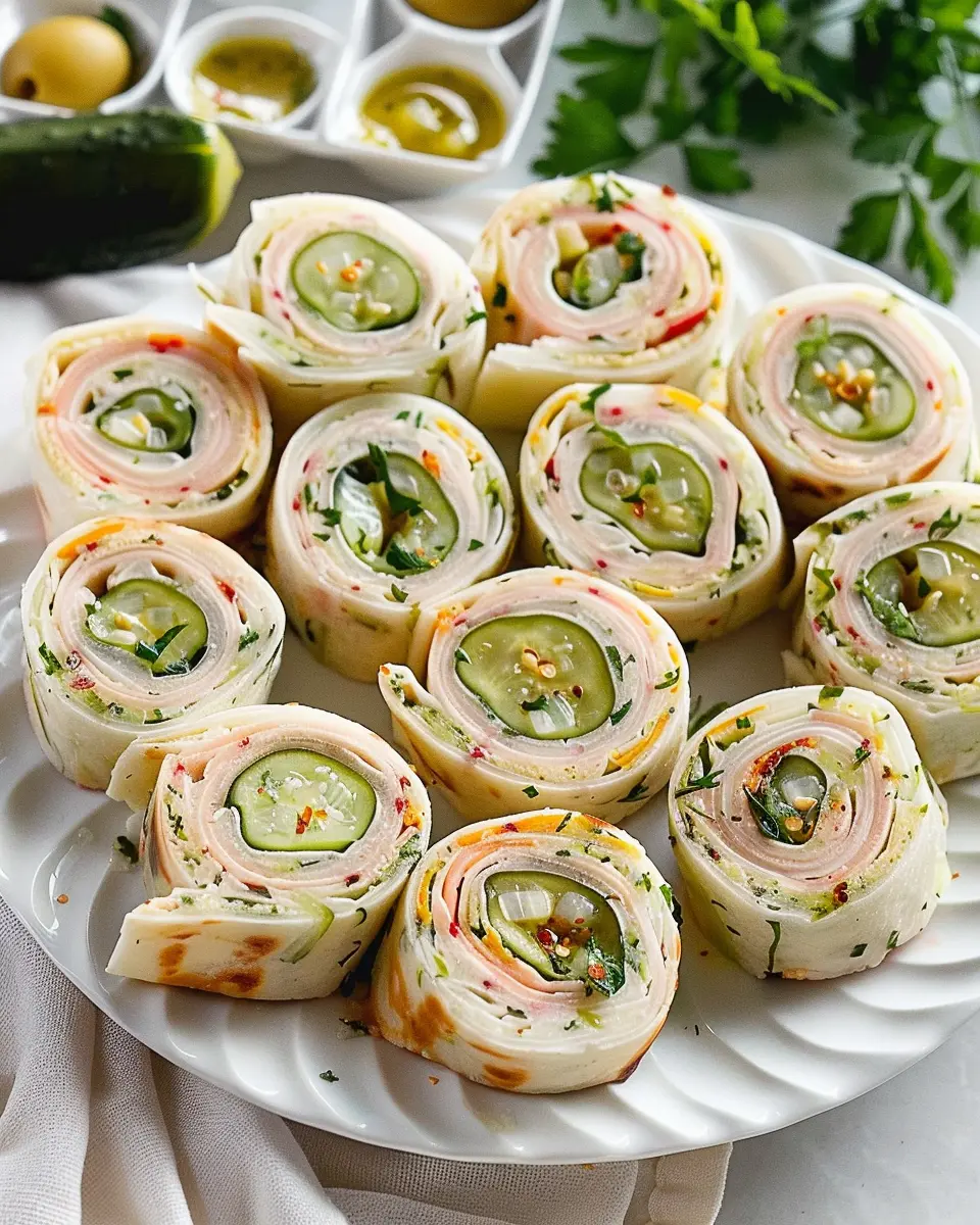 Pickle dip pinwheels are an innovative twist on traditional appetizers, combining the tangy flavor of pickles with creamy spreads, all elegantly rolled up in a tortilla. Typically filled with a blend of cream cheese, seasonings, and your choice of deli meats—like turkey bacon or chicken ham—these delightful bites are as visually appealing as they are delicious. You can also find variations that include extra ingredients, like shredded cheese or fresh herbs, to personalize the flavor to your liking.