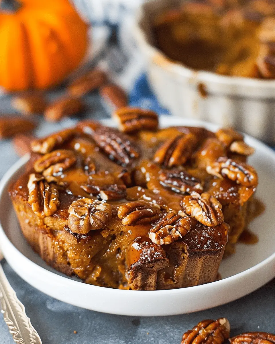 If gluten is a concern, don’t worry—this dessert can easily be adapted! Use gluten-free bread to create a satisfying pumpkin bread pudding that everyone can enjoy. Many brands offer gluten-free loaves that are hearty enough to soak up the pumpkin custard without disintegrating. Pair it with a scoop of vanilla ice cream or a dollop of whipped cream for an extra special touch.