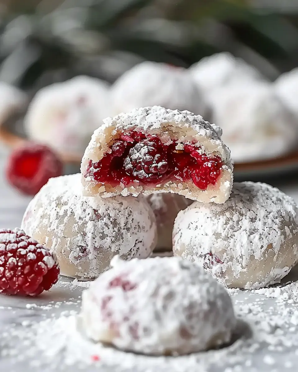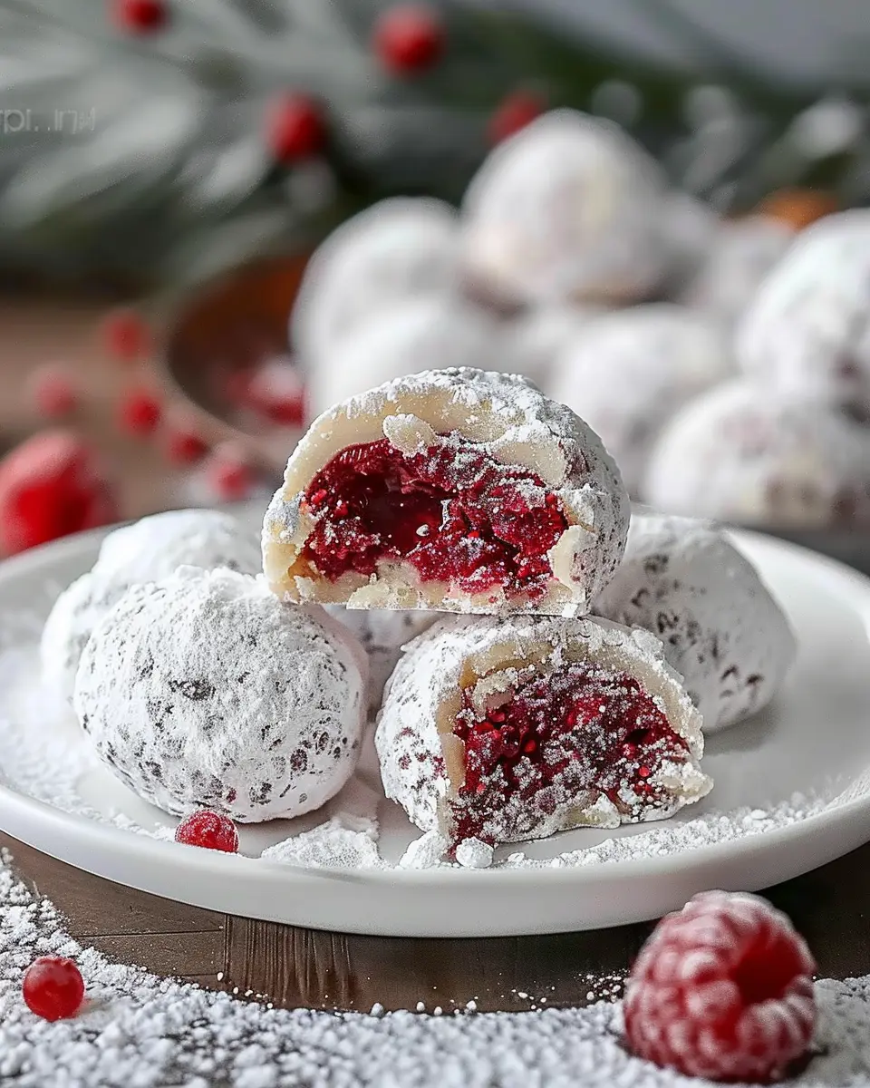 Indulge in the delightful sweetness of Raspberry Almond Snowball Cookies, a perfect treat for any occasion.