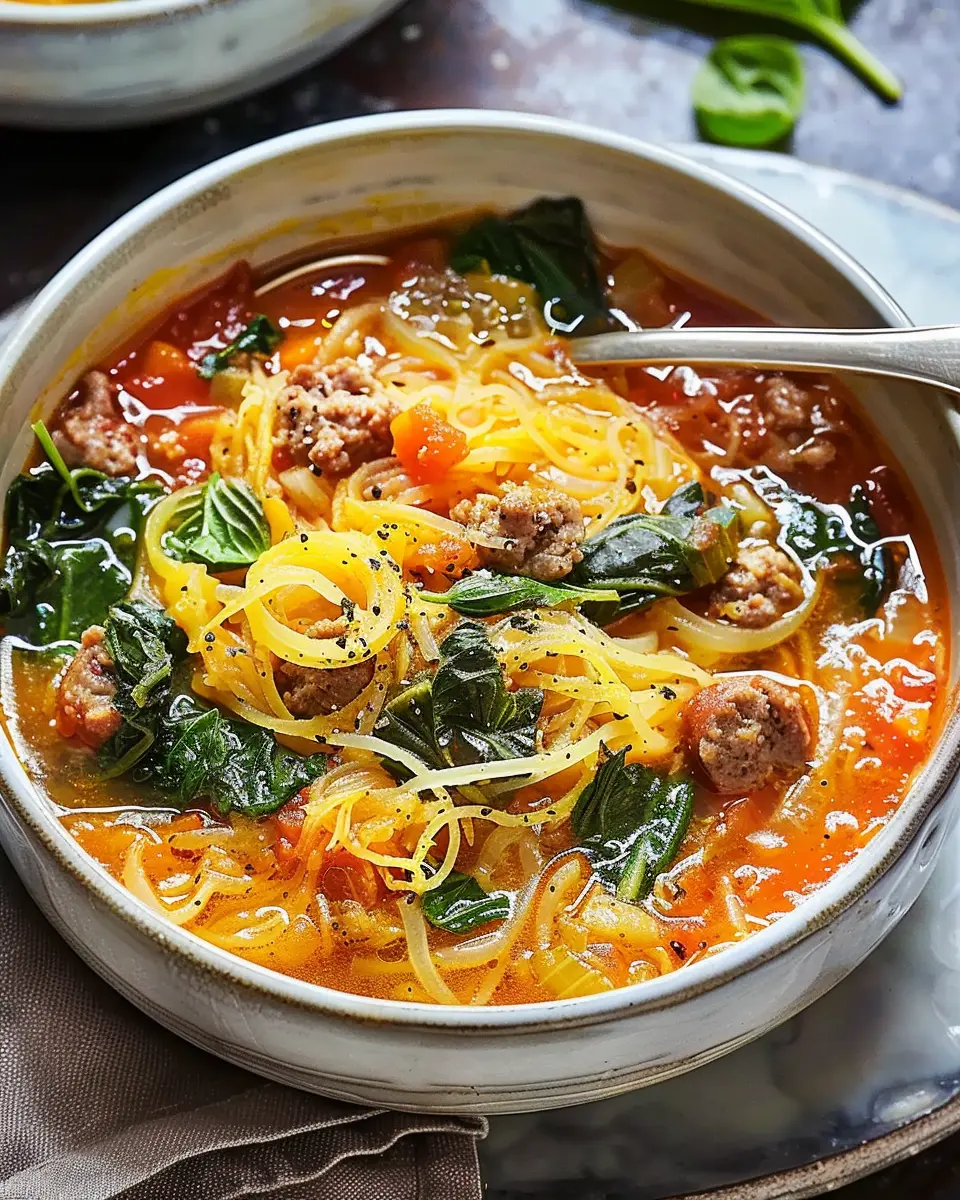 Keywords: Spaghetti Squash Soup, Sausage Soup, Comfort Food, Hearty Soup