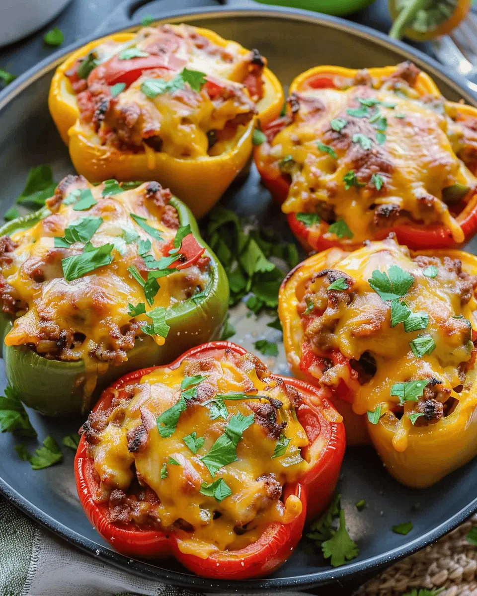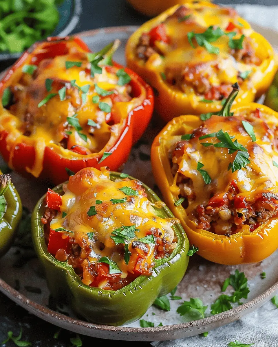 When it comes to presentation, a little creativity goes a long way. Serve your stuffed bell peppers on a colorful platter, garnished with fresh herbs like parsley or basil. This pop of green not only looks appetizing but also hints at the freshness of your meal.