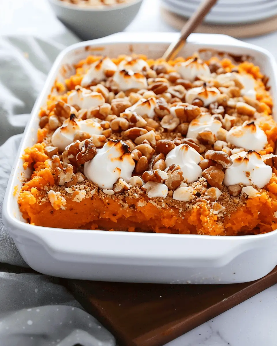 Avoid turning your sweet potato casserole into a dry mess! Make sure not to overcook the sweet potatoes; this can lead to a gummy texture. Moreover, when adding toppings, be mindful of the balance between sweetness and crunch. Too many marshmallows can drown out the sweet potato’s flavor. For a twist, try replacing traditional toppings with crushed pecans or turkey bacon for a savory note.