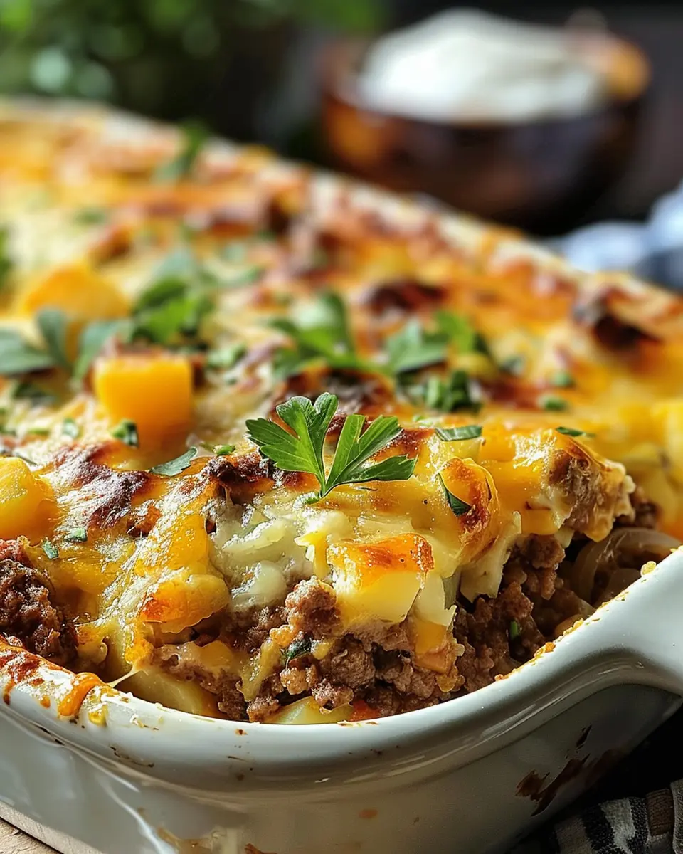 A delicious and comforting casserole featuring loaded potatoes and turkey bacon.