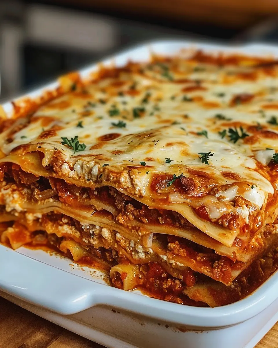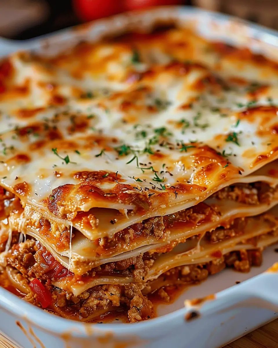PrintThe Best Homemade Lasagna: A Delicious Twist with Turkey Bacon and Chicken Ham