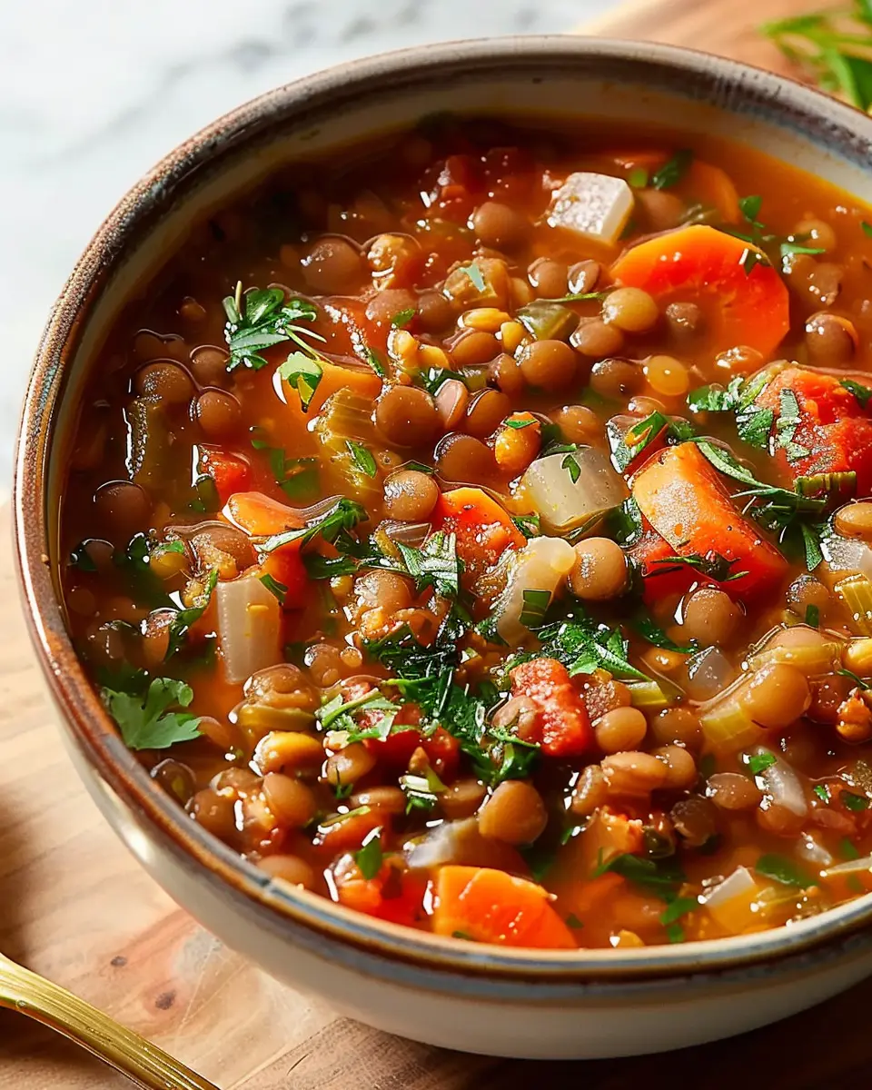 A warm and nourishing vegan lentil soup perfect for chilly evenings.